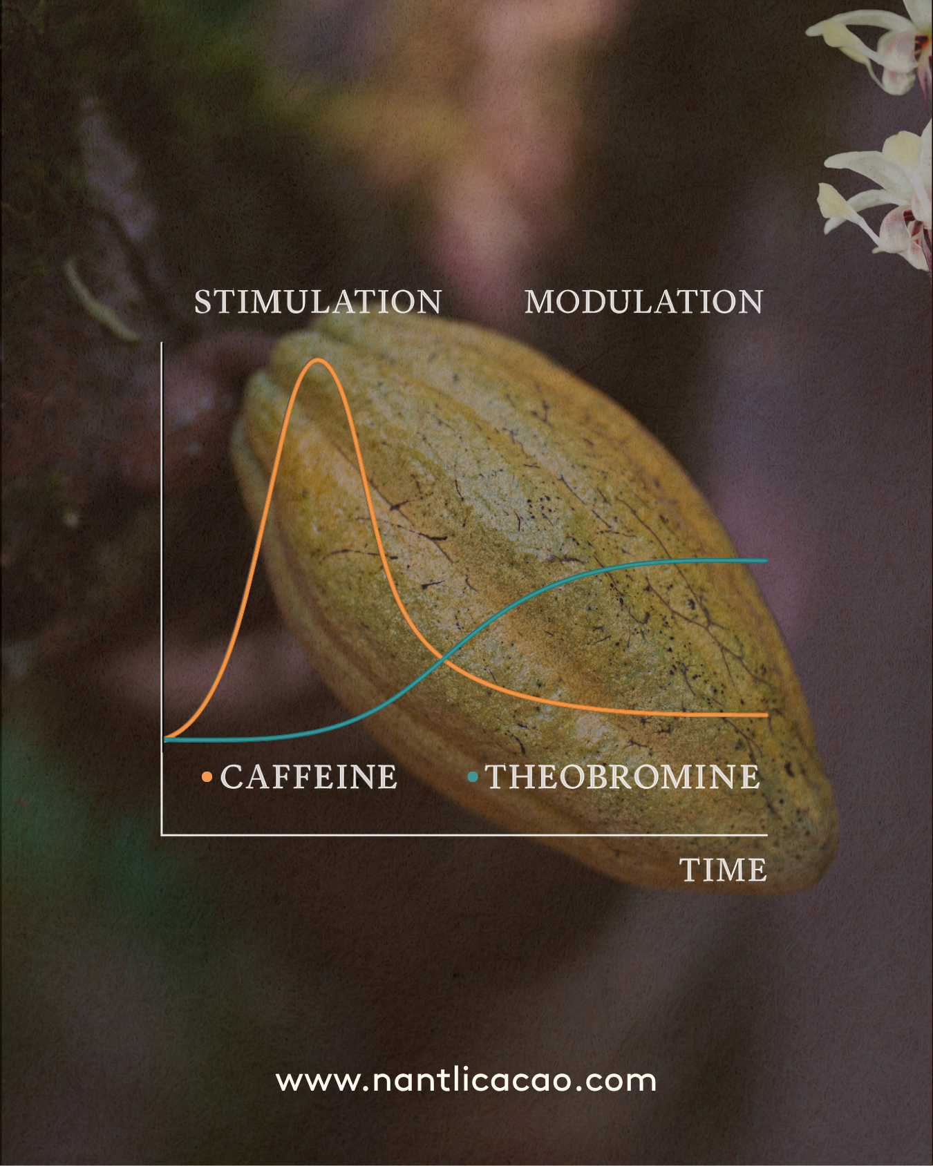 Este cacao conserva altos niveles de teobromina, que aporta energía estable y sostenida; magnesio, esencial para el sistema nervioso y muscular; flavonoides y antioxidantes, que favorecen la salud cardiovascular; y anandamida, un modulador natural del estado de ánimo.